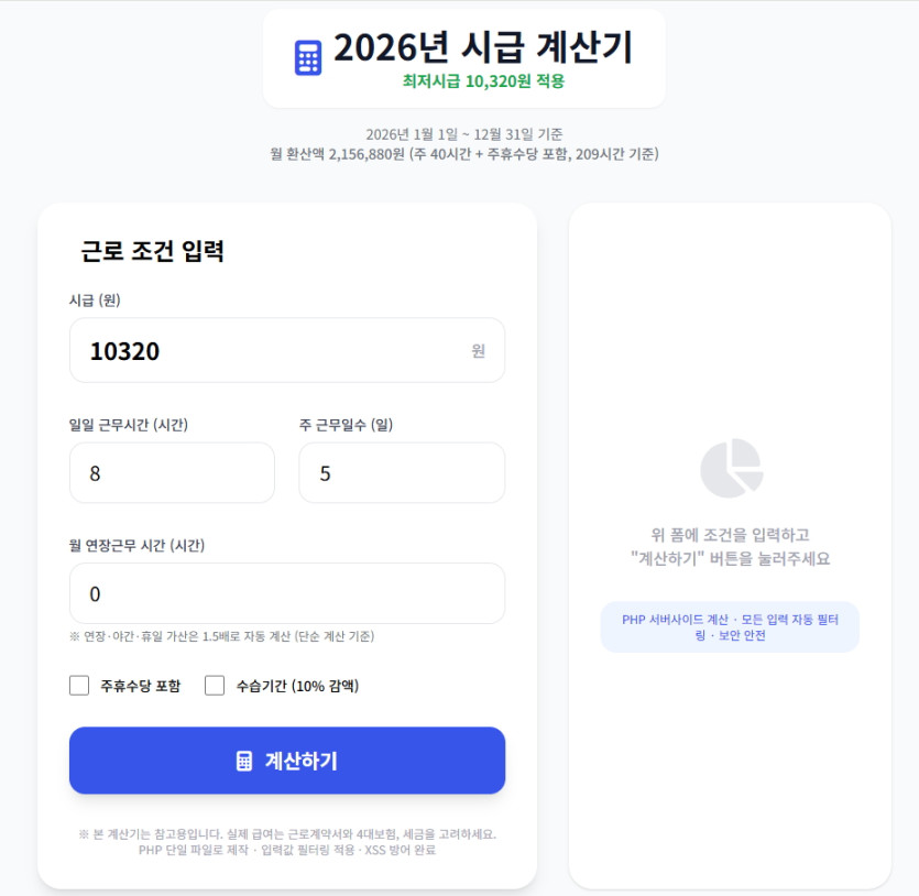 2026년 시급 계산기 ( 최저시급 10,320원 적용 )