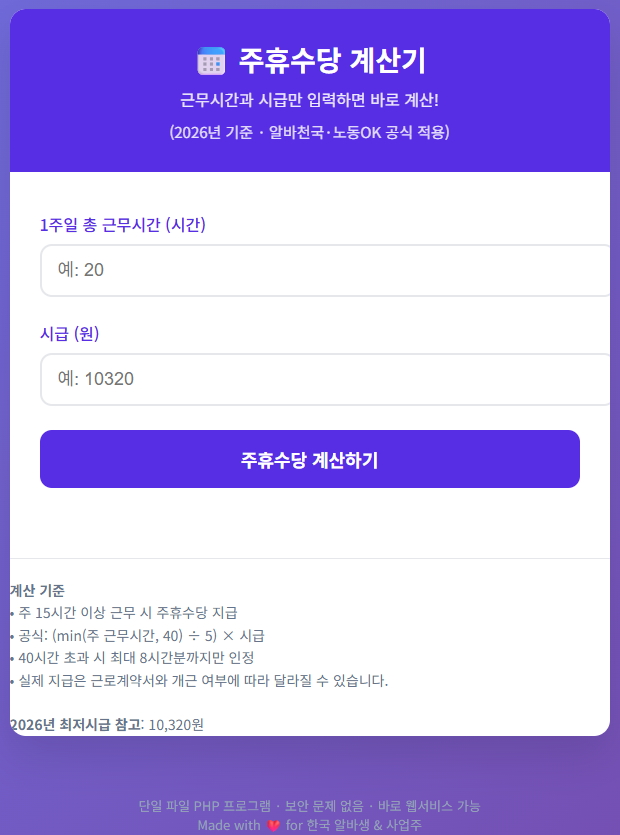 2026년 시급 계산기 ( 최저시급 10,320원 적용 )