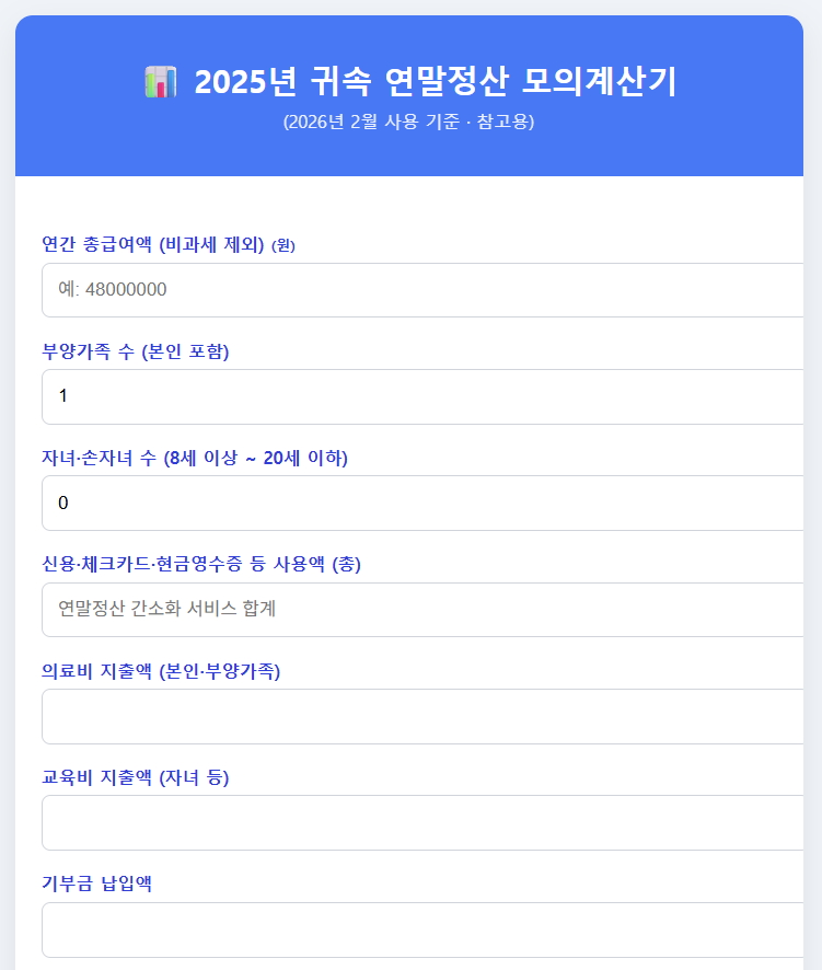 2025년 귀속 연말정산 모의계산기