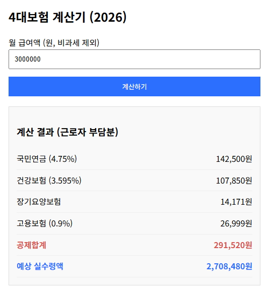 4대보험 계산기 (2026)