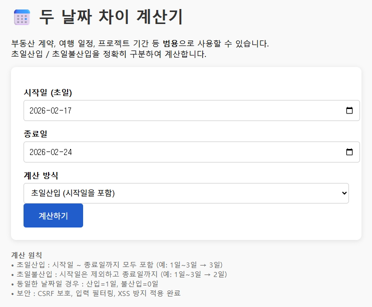 두 날짜 차이 계산기
