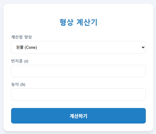 도형 형상 계산기 ( 체적 (Volume), 표면적 (Area) )
