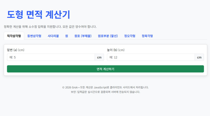 도형 형상 계산기 ( 체적 (Volume), 표면적 (Area) )